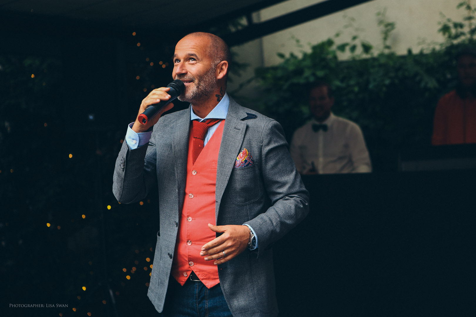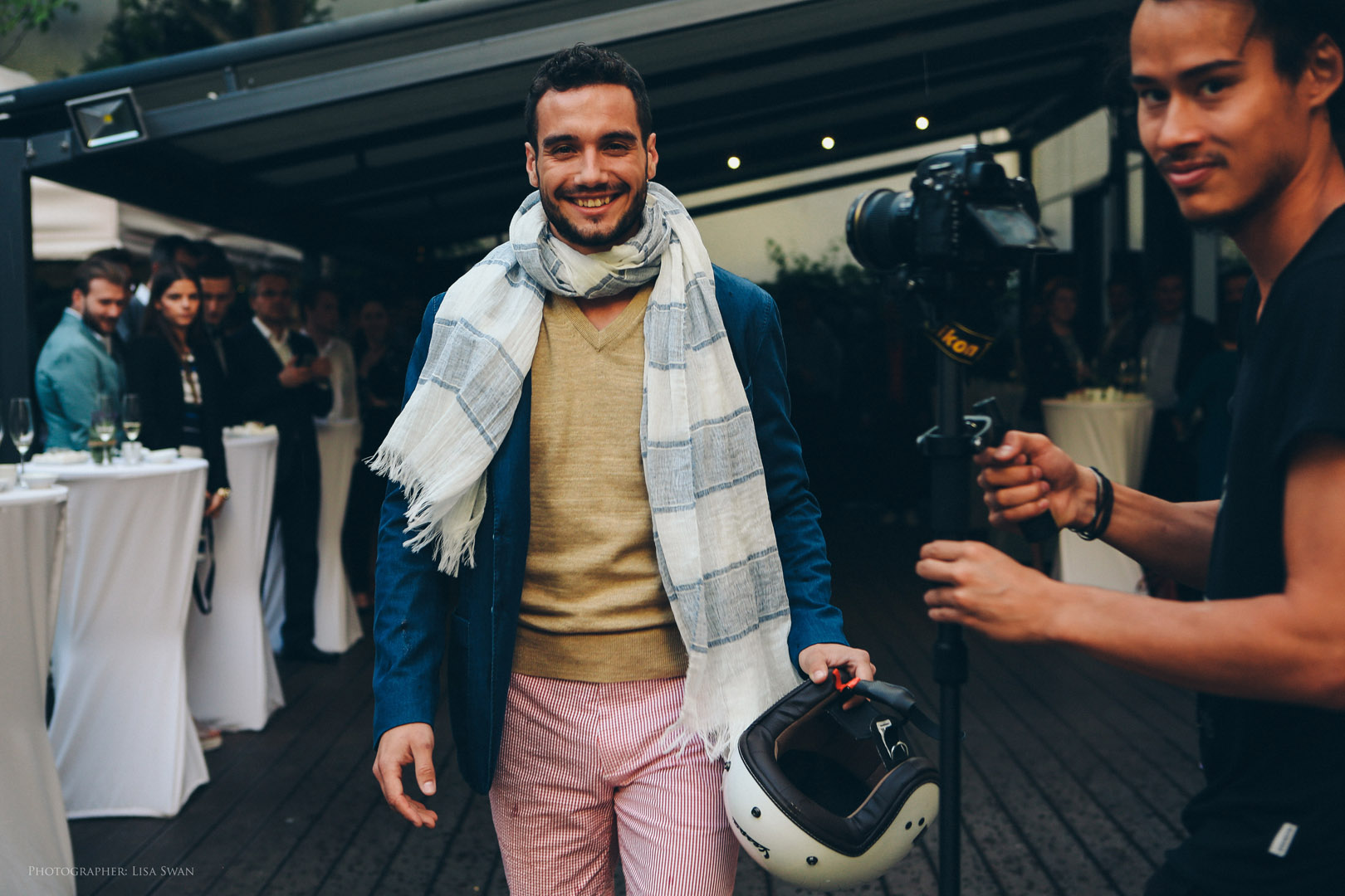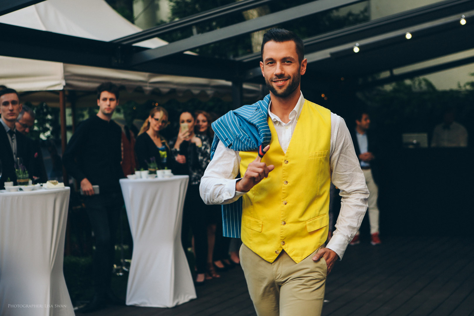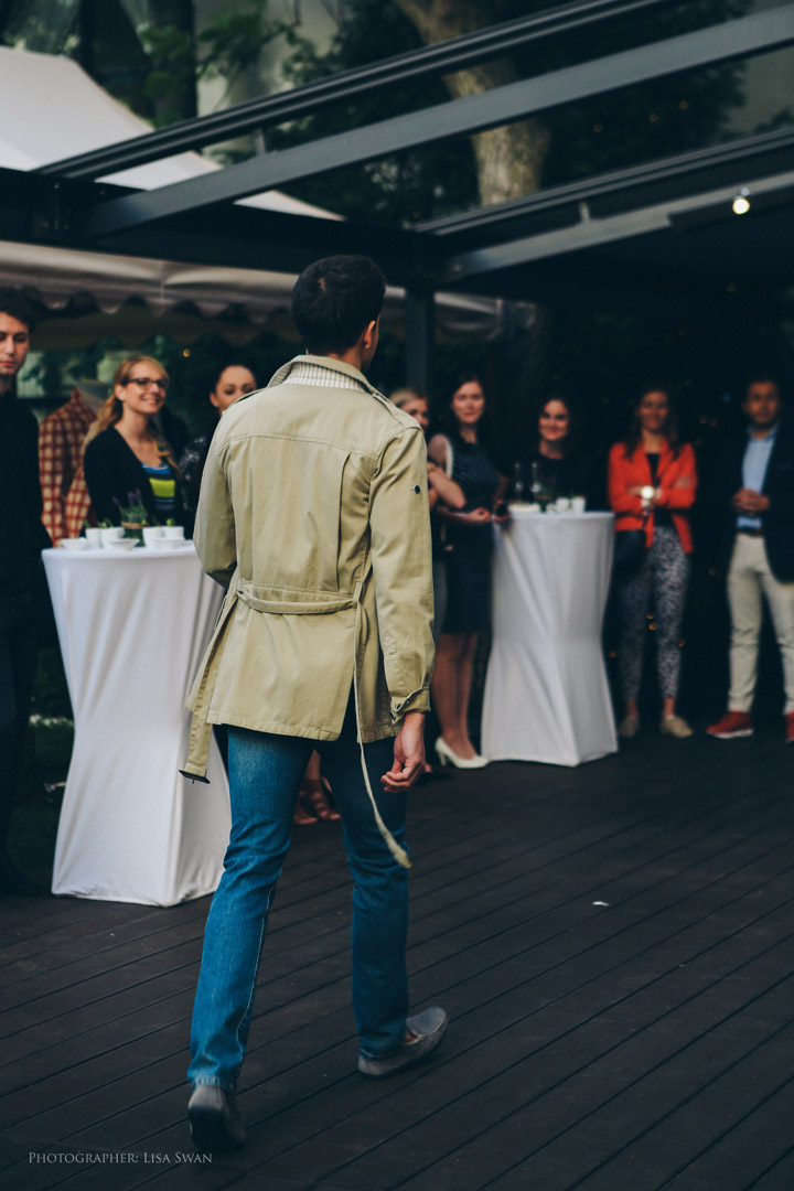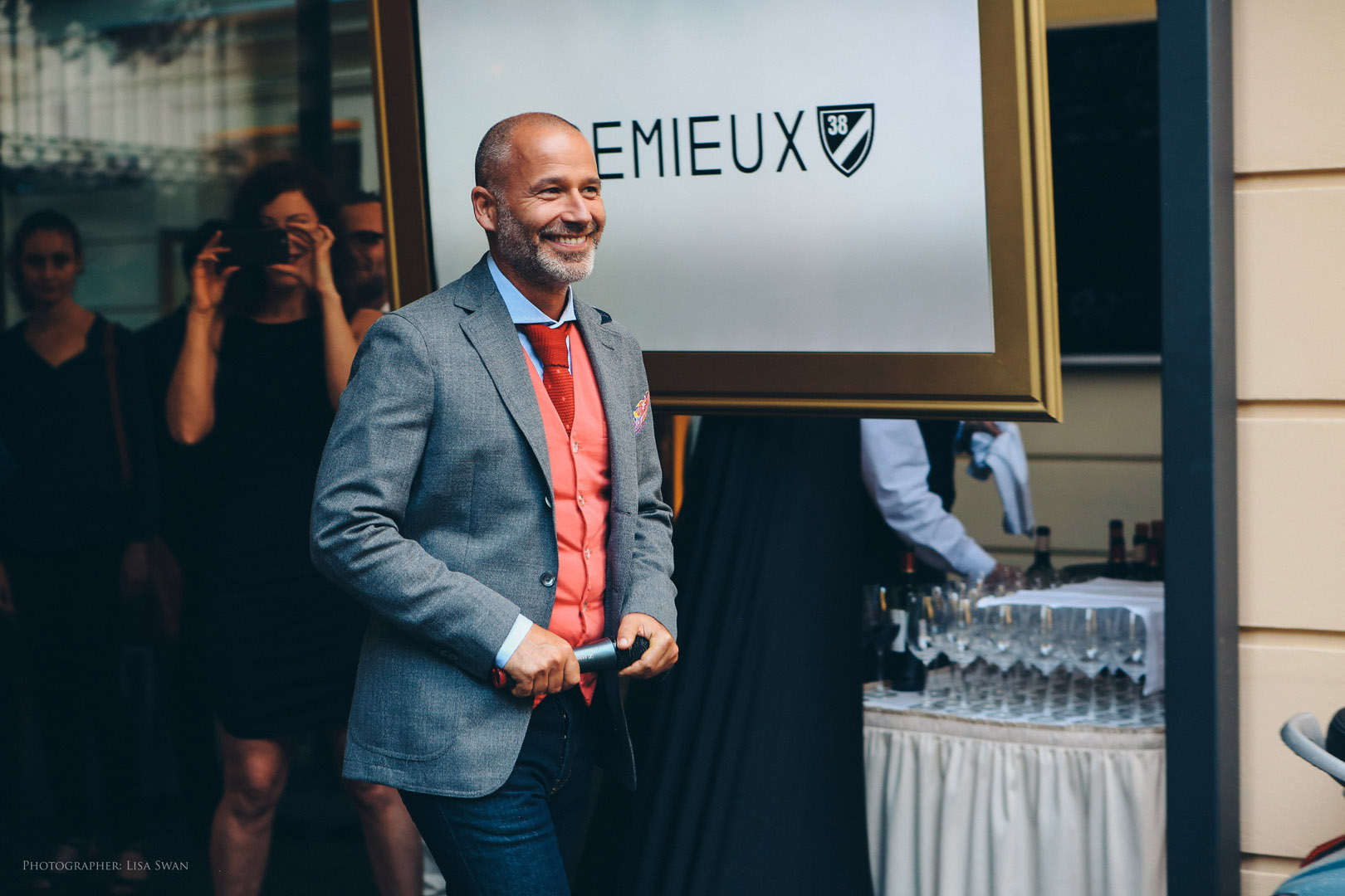 Než jsem vše stihl pořádně zhlédnout a vychutnat si šeptající bublinky šampaňského, přišel široce známý a výborně oblečený moderátor Honza Musil. Sám bych ho označil za mistra slov, jelikož občas Musil musel reagovat i na nečekané události, které se přihodili během celé události a zvládal to skvěle. Během svého proslovu se prozradil, že pořádně ani netuší, jak se tato francouzská módní značka vyslovuje, což nevěděla ani velká část hostů. Touto nevědomostí ohledně výslovnosti tak k sobě přivítal a předal mikrofon hlavnímu řediteli Cremieux, který hned obratem naši nevědomost napravil – vyslovuje se „kchremjů“ – zkrátka po francouzky. Poté už mohla konečně začít již očekávaná fashion show za doprovodu DJ, který vyhrával suprovou hudbu žánru electroswing.
