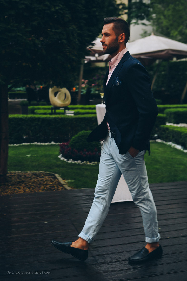 Při chladnějších letních večerech je tento smart casual outfit to pravé. Hlavně opět musím pochválit pěkný soulad barev. Jeho nošení bych si však dokázal představit třeba i na jaře či podzim, díky jemu vrstvení. Jen mokasíny vyměňte za bílé tenisky nebo klasické formální či poloformální boty.