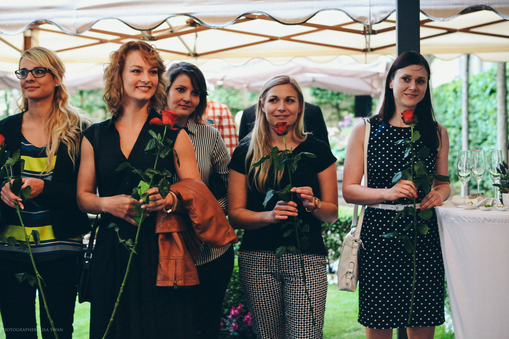 Po skončení módní přehlídky se hosté hezky rozmístili po celém nádvoří, kde ochutnávali francouzské delikatesní pokrmy a popíjeli lahodné Francouzské víno. Kdyby chtěl být někdo aktivní, tak byl pro nás přichystaný i pétanque. Nemusím snad ani říkat, že celá událost se vyvíjela v duchu Francie, takže vše bylo dokonalé od krásných žen, hudby, oblečení až po samotnou konverzaci mezi jednotlivými hosty.