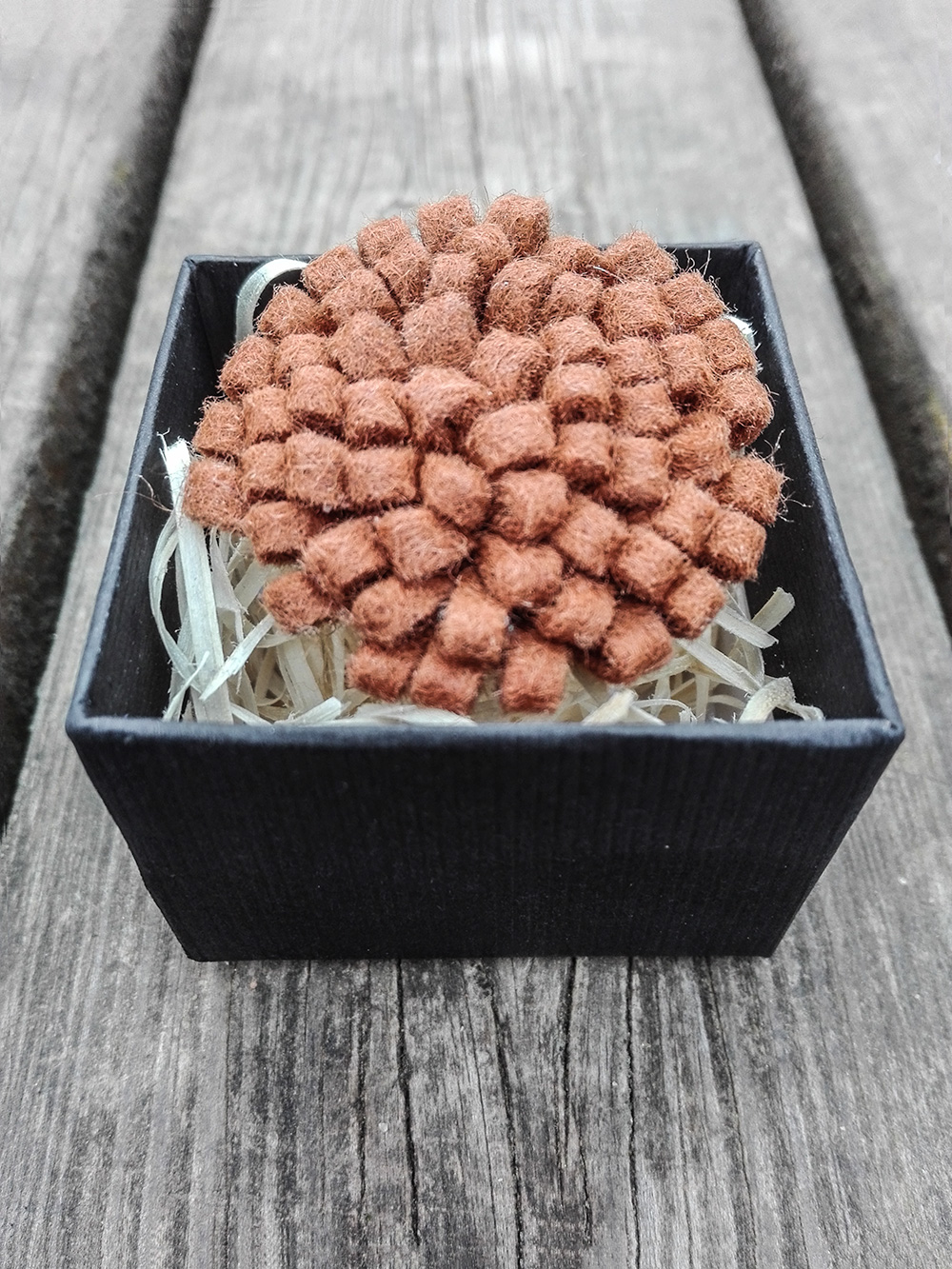 Ozdoba, která mě překvapila nejvíce je právě ta třetí – rustikal filcové barvy. Vyzkoušel jsem ji na svém tvídovém saku a výsledek podle mě vypadá náramně. Ozdobu si dokážu představit i např. na šedivém saku, které by skvěle rozzářila.