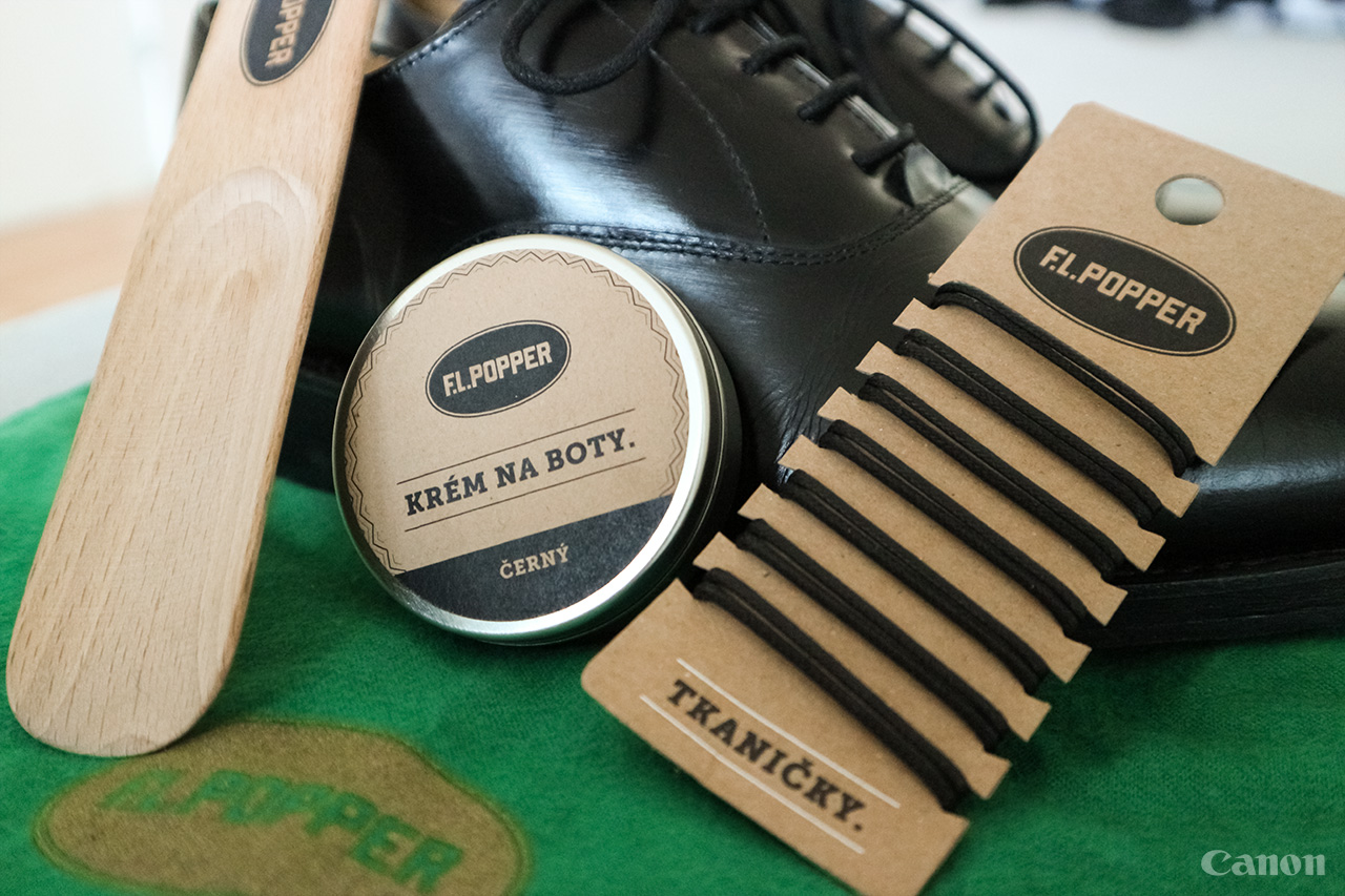 Co mnohé překvapí je obsah krabice, ve které boty dostanete. Kromě bot totiž v krabici dostanete leštící hadřík, krém v barvě bot, náhradní tkaničky a dřevěnou lžíci. Základní péči o obuv tedy máte připravenou již v balení, což ohromně oceňuji. V obálce pak naleznete desatero tipů k péči o obuv.